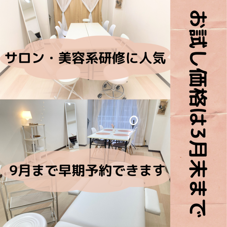 新大阪のレンタルサロンこもれびです✨ 初めて使うレンタルサロンってちょっと不安も・・・ その気持ちがすごくわかるから、期間限定のお試し価格オープンセール始めました🌸 新大阪エリアのレンタルサロンで最安値のオープンセールです エステやマッサージ、ネイルや整体、鍼灸など。開業したいけど集客に自信がない。そんな人の固定費削減にお役に立てるお試し価格です。 Instagramハイライトにある3,000円以 […]